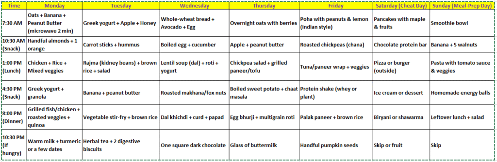 One-Week Sample Diet Chart (Flexible, Cheap, Tasty & Global):